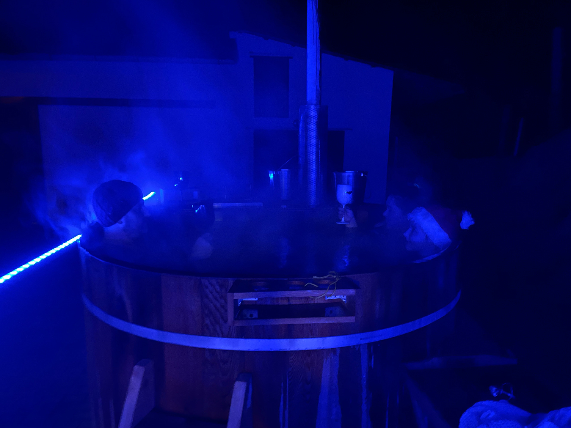 Samotný sud je vysoký 1 m a má průměr 1,8 m. Je pevně smontován s přívěsem a během používání na něm zůstává umístěn. Má vnitřní topeniště z nerezového plechu a odnímatelný dvoudílný komín. Spodní část komínu je chráněna perforovaným plechem. Topeniště je odděleno dřevěnou stěnou. Je určen až pro 6 dospělých osob. Dále je vybaven vzduchováním se šesti tryskami a přípojkou pro filtraci. Ta je potřebná při delším používání (např. týden a více). Jak vzduchování, tak i filtraci je možno ovládat dálkovým ovládáním. Pro tento provoz je potřeba přípojka 230V AC. Samotný rozvaděč je vybaven proudovým chráničem.